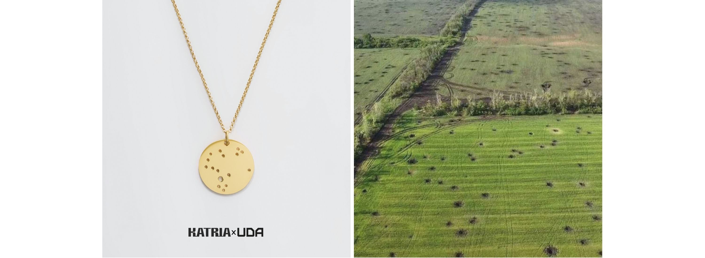 Благодійний підвіс "Поранена земля" народився в колаборації з Асоціацією саперів України з реальної світлини української землі, пошматованої вибухами. Її візерунок- не просто дизайн, а відбиток сьогодення, символ ран і шрамів, які війна залишила на нашій країні.